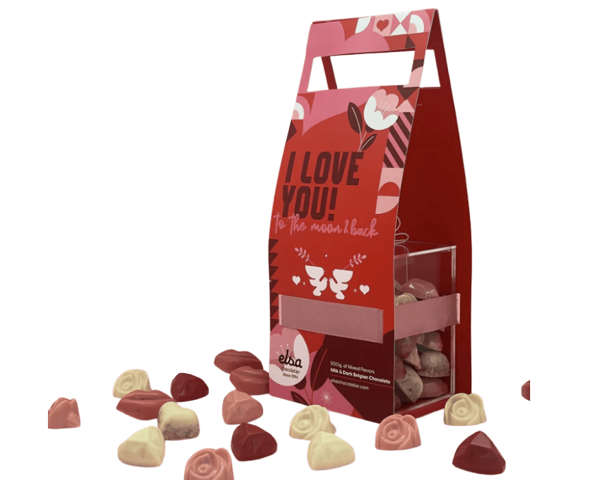 Bring the romance with our Love Chocolate Gift! Our plexi box is filled with unique flavors of chocolate hearts and flowers, making it a sweet declaration of love. 🍫❤️ Add a little love to someone’s day with this gift.