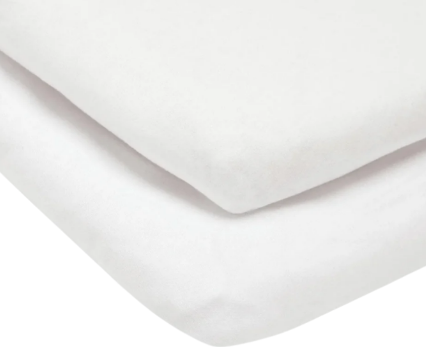 The crib sheets pack includes two ultra-soft fitted sheets designed specifically for the Lua bedside crib. Made from 100% cotton, they offer a gentle and breathable sleeping surface that is soft on newborn skin while maintaining comfort throughout the night. Their durable stretch fabric keeps a secure fit and stays soft wash after wash, making them ideal for everyday use from the very first sleep.