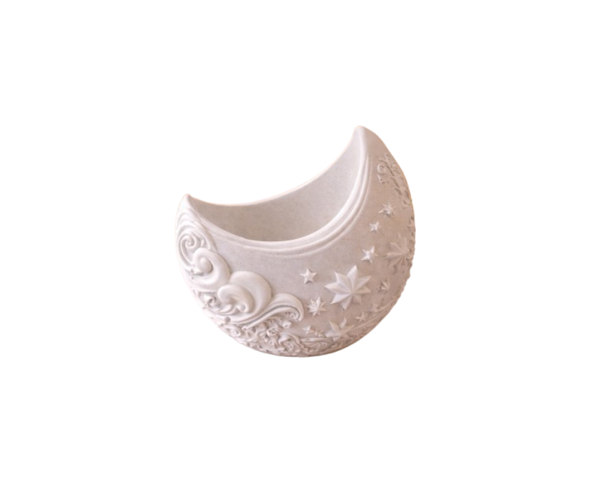 The Luna Glow Vase is a sculptural décor piece inspired by the calm glow of the moon, featuring a curved crescent form with delicate celestial details. Handcrafted in concrete for a natural organic texture or MBS for a smooth refined finish, it can be styled as a statement vase, decorative bowl, or ambient centerpiece. Ideal for coffee tables, shelves, consoles, or bedside corners with dried florals or soft lighting.