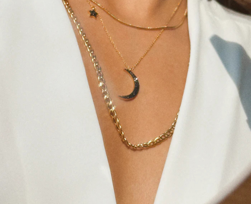 The Lune Noir set includes three elegant necklaces designed to create a sleek and modern layered look. Each piece can be worn individually for a subtle style or combined for a bold, sophisticated statement. Ideal for day to night wear, it adds effortless charm and versatility to any outfit.