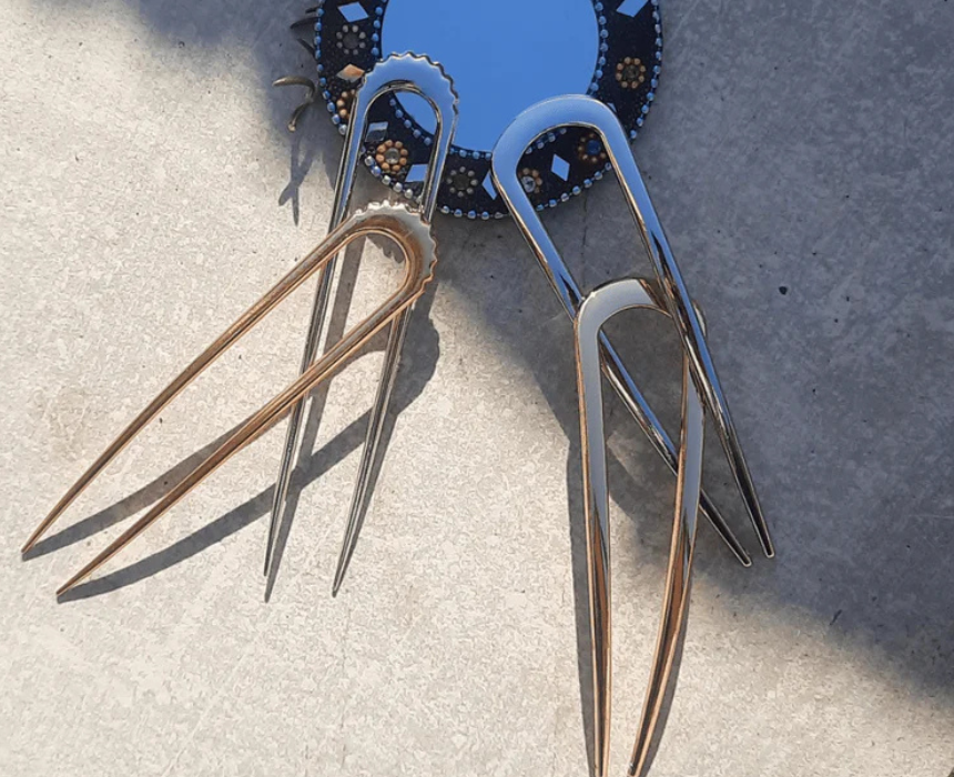 This elegant U-shaped clip set includes one silver and one gold piece, offering a sleek and minimal look that effortlessly elevates any hairstyle. Designed for secure hold and everyday versatility, they complement half-up styles, side tucks, and braided looks with chic simplicity. Slip them into styled or natural hair for an instant polished finish.