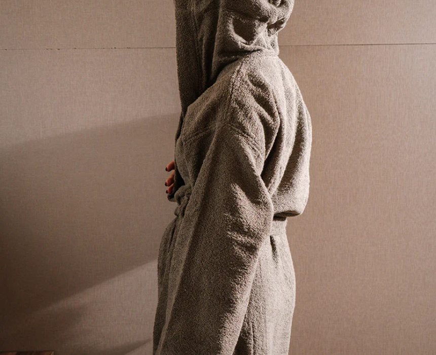 The Luxury Hooded Bathrobe in dark grey is crafted from soft, absorbent cotton, providing cozy comfort for lounging or post-shower relaxation. It features a hood, tie belt, and practical pockets for a snug, functional fit. Its sophisticated dark grey color and elegant design make it perfect for everyday wear or gifting.