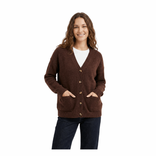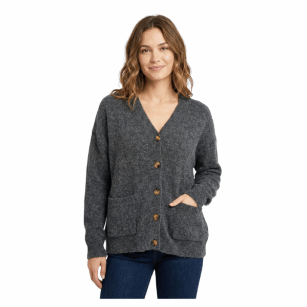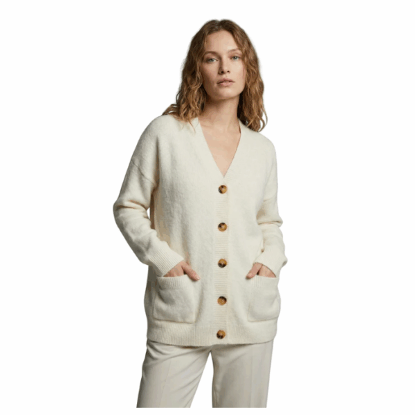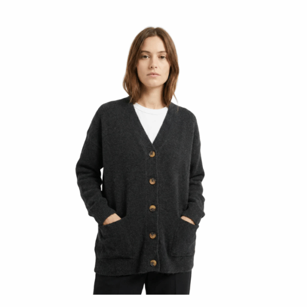 This women’s cardigan is made from soft rib knit fabric with a comfortable stretch that contours the body while holding its shape. Designed in a versatile one size fit, it offers everyday comfort with a clean, refined silhouette. Style it over a fitted top or dress for effortless layering.