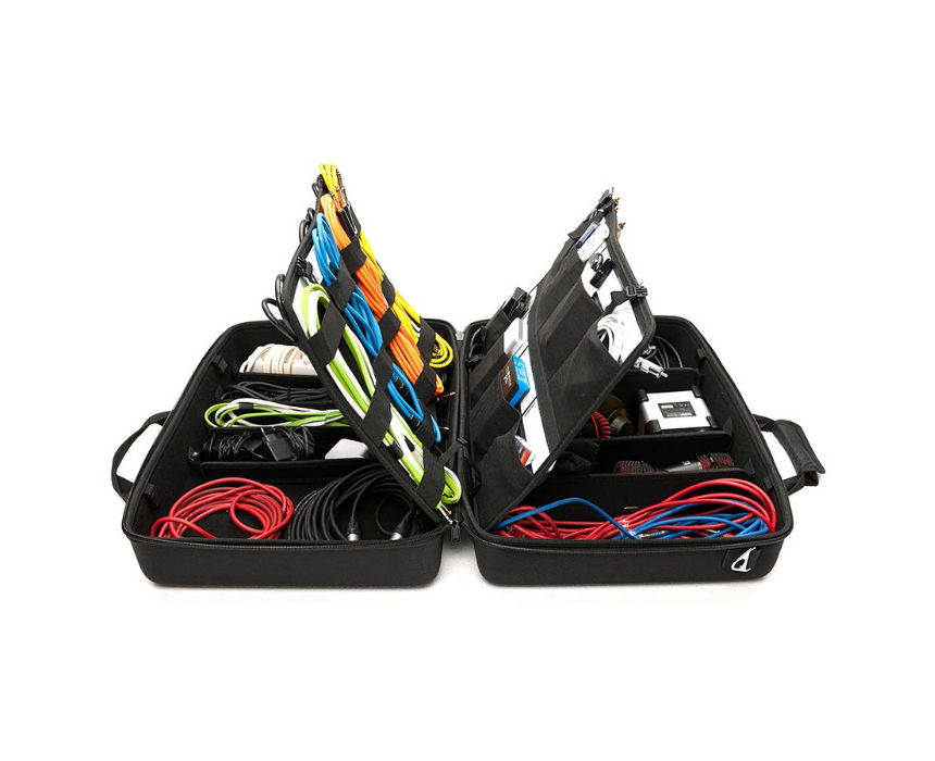 This professional all in one storage and organization system features a rugged aluminum build with customizable compartments and multiple drawers for flexible gear arrangement. It includes a telescoping handle and smooth rolling wheels for easy transport, making it ideal for storing cables, tools, and essential equipment. Designed for DJs, musicians, and audio technicians, it keeps gear organized, protected, and easy to access.