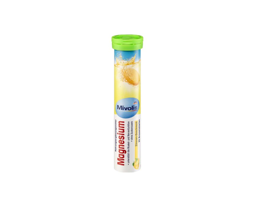 Mivolis Magnesium Effervescent Tablets (20 pcs., 82 g) support normal muscle and nerve function, making them ideal for active lifestyles or times of increased physical demand. With a refreshing lemon flavor and no added sugar, each tablet delivers essential magnesium in a convenient, fast-dissolving form. Simply dissolve one tablet daily in water and enjoy as part of your wellness routine.