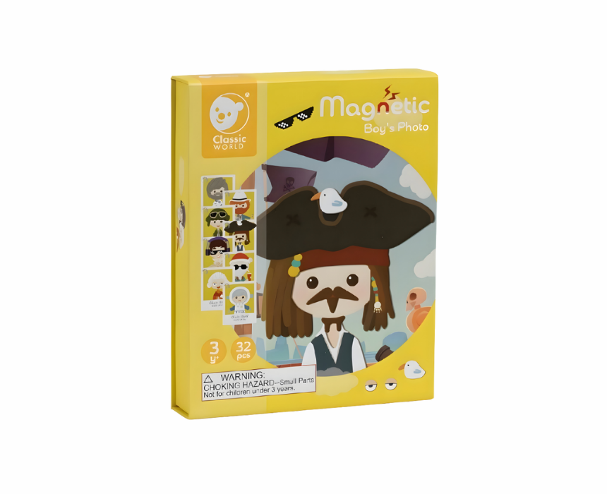 Designed for ages 3 and up, this Classic World magnetic character puzzle includes 32 pieces that let children mix and match outfits, accessories, and hairstyles to create fun characters like princesses, artists, musicians, and pilots. It encourages imaginative play, creativity, and logical thinking while supporting cognitive development through hands on magnetic fun.