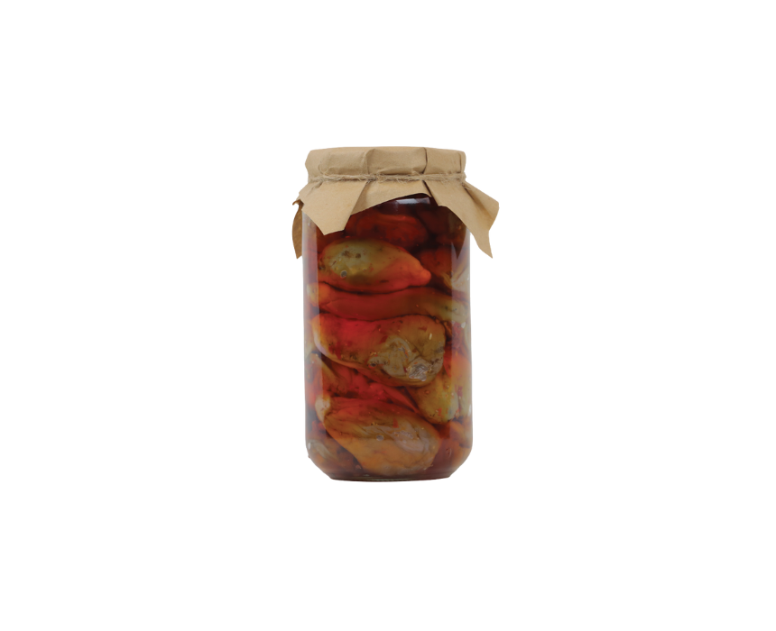 Try MAKDOUS, a unique eggplant dish made from walnuts, capsicum, and garlic. Perfectly spiced, this dish is a delightful blend of flavors and textures. Enjoy the crunch of walnuts combined with the natural sweetness of eggplant. A delightful option for any meal! Ingredients: Eggplant, Pepper, Oil, Walnuts.