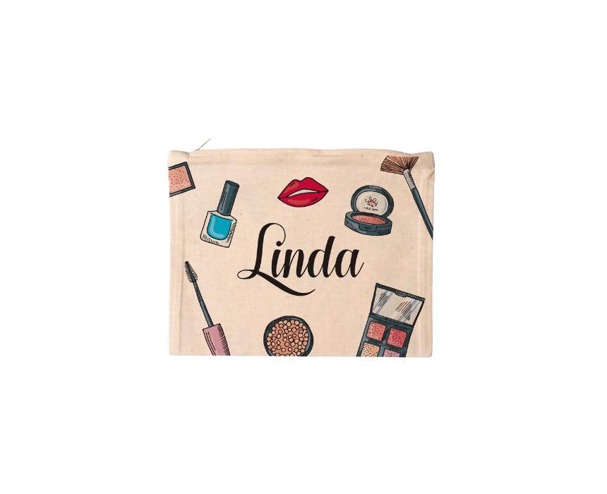 The Customized Makeup Pouch is a versatile cotton accessory measuring 23 by 18.5 cm that is perfect for organizing your daily beauty and travel essentials. This lightweight and durable bag can be personalized to reflect your unique style while keeping your belongings secure and easy to find. To style this charming pouch, toss it into a large beach tote for a beach day organization or use it as a chic handheld clutch during a casual brunch to keep your phone and lipstick conveniently at your fingertips.