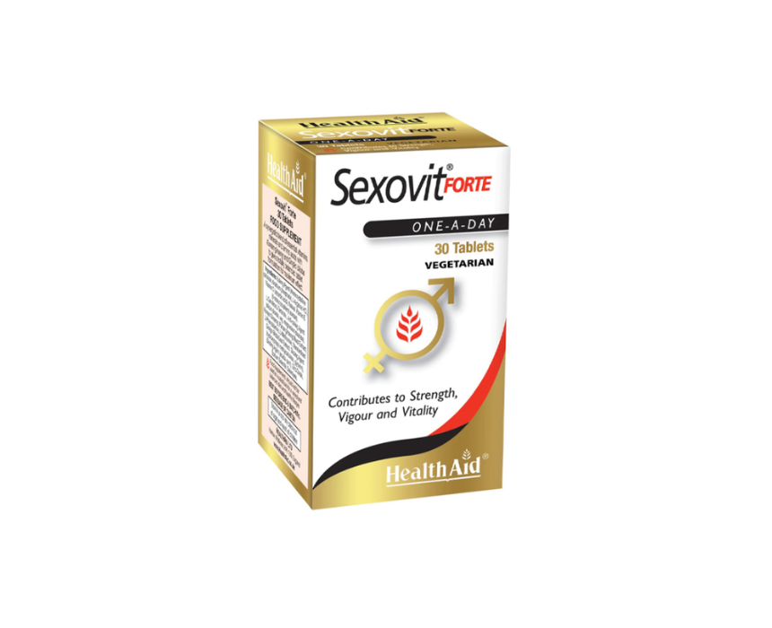 Sexovit Forte is a comprehensive vitality supplement formulated with essential vitamins, minerals, amino acids, and botanical extracts to support strength, energy, and sexual health. With ginseng and ginkgo biloba to promote circulation, energy, and cognitive function, plus zinc and selenium to maintain testosterone levels, fertility, and sperm formation, it provides targeted support for male vitality. Vitamin C reduces fatigue, vitamin E protects against oxidative stress, and L-arginine aids blood flow. Taken daily, it contributes to overall well-being and enhanced performance.