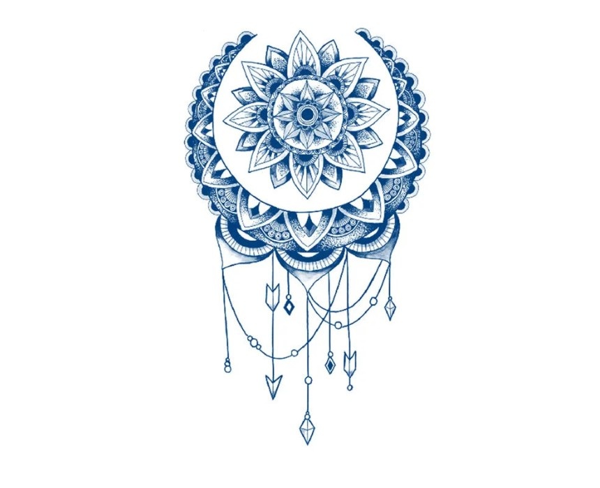 This temporary jagua tattoo features a mandala and moon inspired design sized 11 x 18 cm, created for elegant and spiritual body art expression. It applies easily to the skin and develops into a natural dark stain for a realistic tattoo effect lasting several days. Ideal for styling on arms, wrists, or collarbone, it enhances boho looks, festival outfits, and everyday fashion with a calm and artistic aesthetic.