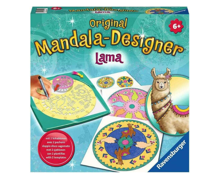 The Mandala Designer Lama Style Set lets children aged 6 and up create endless mandala patterns using a mobile round stencil and included frame. This set includes 2 stencils, 1 felt-tip pen, 3 colored pencils, and white sheets, featuring llama-inspired designs with cacti and Peruvian symbols. Made from FSC-certified and recycled materials, it encourages creativity, concentration, and artistic expression in a sustainable way.