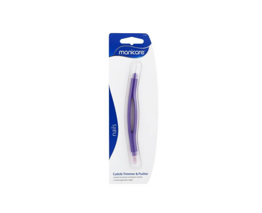 Manicare Cuticle Trimmer and Pusher is a dual-purpose tool designed for precise trimming and pushing of cuticles. It helps maintain healthy, well-groomed nails, making it ideal for both at-home and professional manicure routines.