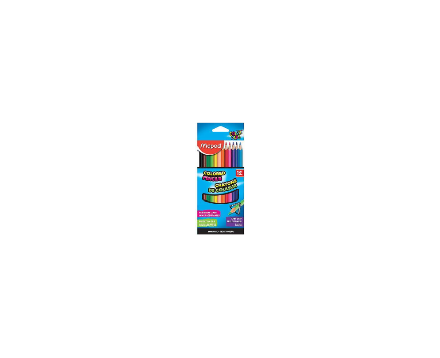 Maped Triangle Color Pencils 12 Pieces provide vibrant colors for drawing coloring and creative projects. The triangular design ensures a comfortable grip making them ideal for long coloring sessions at school home or for art projects. This set includes 12 bright and high quality color pencils for students and artists.