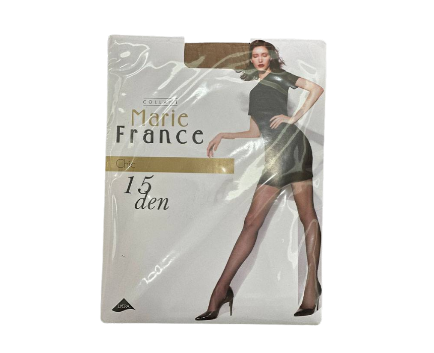 Marie France Chic 15 Camel stockings offer a stylish, sheer finish with a comfortable fit, ideal for both everyday wear and elegant occasions.