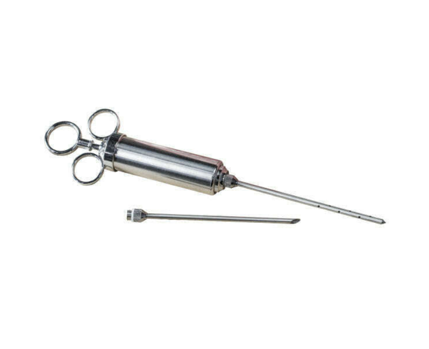 The Oklahoma Joe’s® Marinade Injector makes it simple to infuse meats with flavor and moisture, ensuring juicy, tender results every time. Crafted from durable stainless steel, it features a solid syringe for small foods, a perforated syringe for liquid marinades, a 2-ounce capacity, and disassembles easily for cleaning. Perfect for steaks, poultry, roasts, or any meat, it’s a must-have tool for home chefs and grilling enthusiasts.