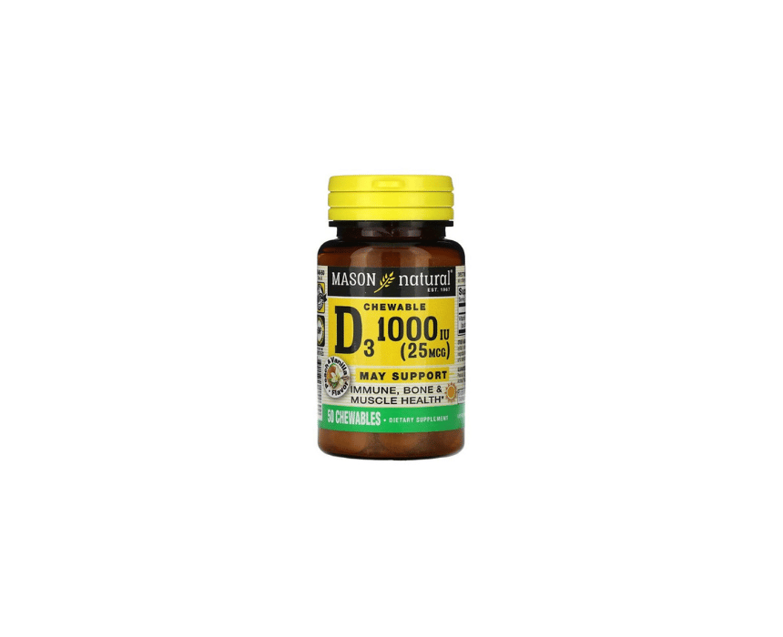 Mason’s Vitamin D3 chewables provide a convenient daily dose of 1000 IU vitamin D to support bone health, immune function, and overall wellness. These tasty chewables help maintain optimal vitamin D levels for daily health. Take one chewable daily as part of a balanced supplement routine.