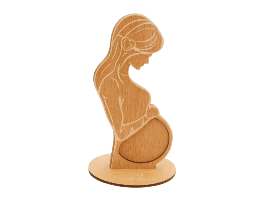The Maternity Photo Frame features a wooden design shaped like a pregnant mother with a hollow center to display a baby echo image. With its built-in stand, it’s perfect for showcasing cherished memories in nurseries or living spaces. Ideal for expecting parents or as a thoughtful baby shower gift.