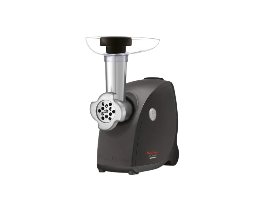 The Moulinex ME472832 Meat Grinder features a powerful 2000W motor capable of grinding up to 2.3 kg of meat per minute. It includes sausage and kebbe attachments plus two stainless steel discs for fine and coarse textures. With a reverse function to prevent jamming, detachable parts for easy cleaning, non-slip feet, and a sleek black and stainless steel design, it offers versatility and efficiency for home meat processing.