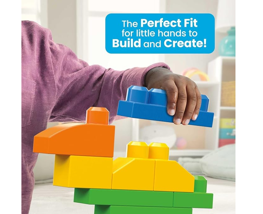 The Mega Bloks First Builders Toddler Blocks Toys Set includes 150 colorful pieces designed for easy grip and endless building fun. Perfect for little hands, the blocks can be stacked and combined to create simple structures, encouraging creativity and early learning. Ideal for everyday play, it helps develop fine motor skills and imaginative thinking.