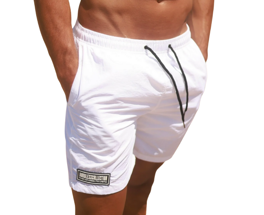 The Men’s Swim Shorts by doublexxcollection are designed for style, comfort, and performance. Crafted in white, they feature quick-dry fabric, an elastic waistband with adjustable drawstring, side pockets, and a lightweight, breathable construction for maximum mobility. Perfect for the beach, pool, or any water adventure, these shorts combine practicality with a clean, versatile look for active summer days.