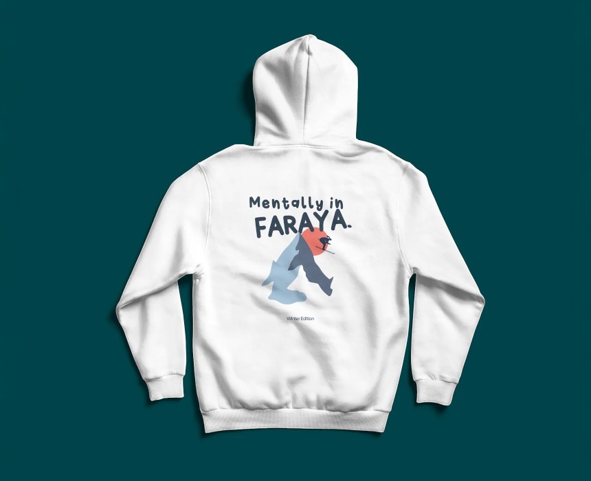 Physically here. Mentally in Faraya. This hoodie captures the winter state of mind we all know too well. Designed with a minimalist front print and a bold back illustration inspired by Faraya’s mountains, it’s a tribute to cold air, ski days, and escaping the noise. Clean typography and a relaxed unisex fit make it a winter-ready essential. Whether you’re on the slopes or just dreaming about them, this soft, heavyweight hoodie is for you. Available in White and Black from S to 2XL.