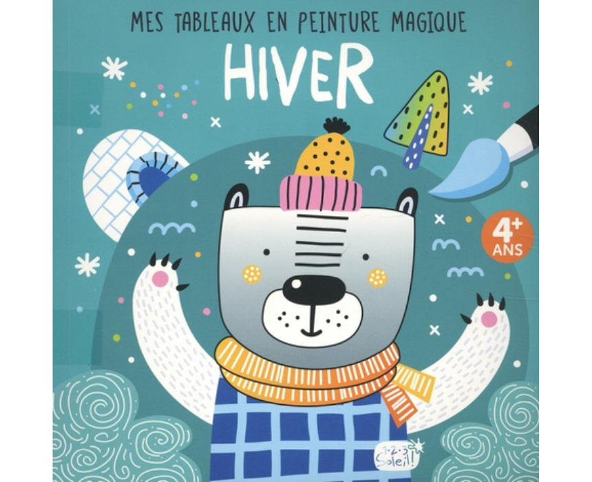 Mes Tableaux en Peinture Magique Hiver avec 1 Pinceau is a creative children’s activity book featuring winter themed illustrations that magically reveal colors with water using the included brush. Designed in an easy to use format for little hands, it is perfect for quiet play, travel, or gifting and can be styled on a kids activity table or craft shelf.