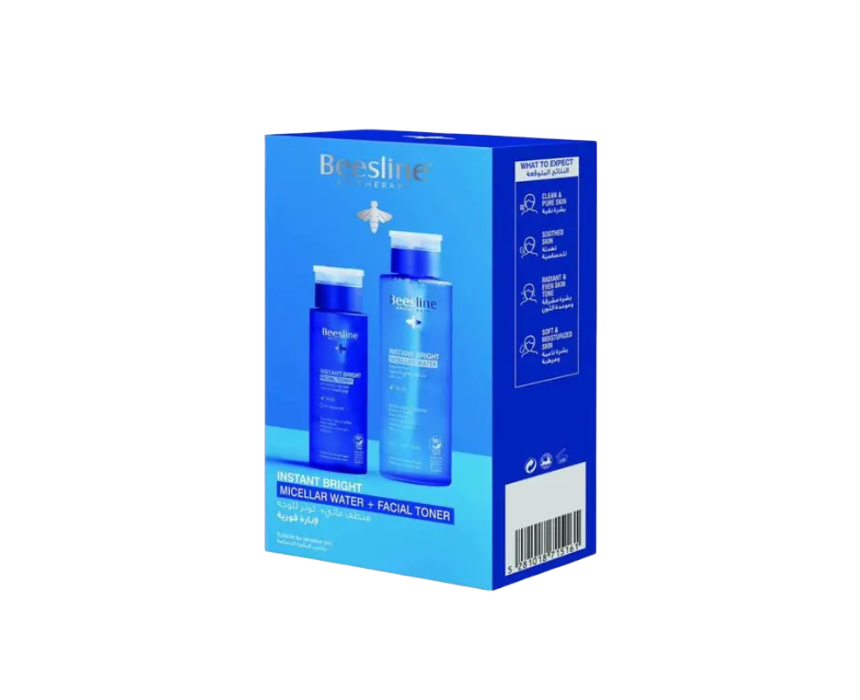 This two-step skincare set features a brightening micellar water and a facial toner for a refreshed, radiant complexion. The micellar water gently removes makeup, dirt, and impurities, while the toner tones, calms, and helps even skin tone.