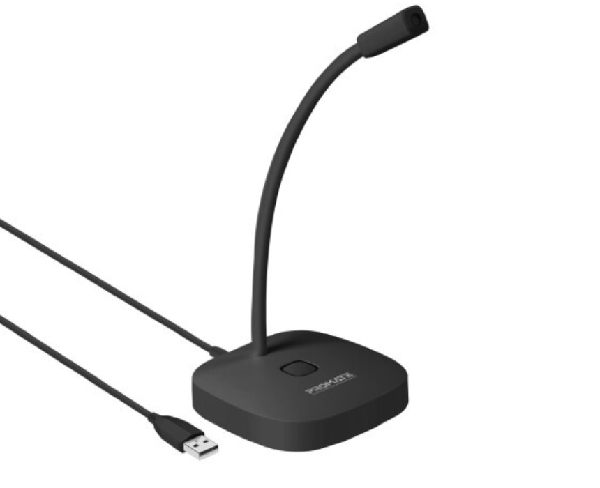 The Promic 1 black desktop microphone with USB port features advanced noise reduction, delivering clear and professional audio for calls, streaming, and recordings. Its compact design fits any workspace, making it easy to connect, position, and use for work, gaming, or online communication.