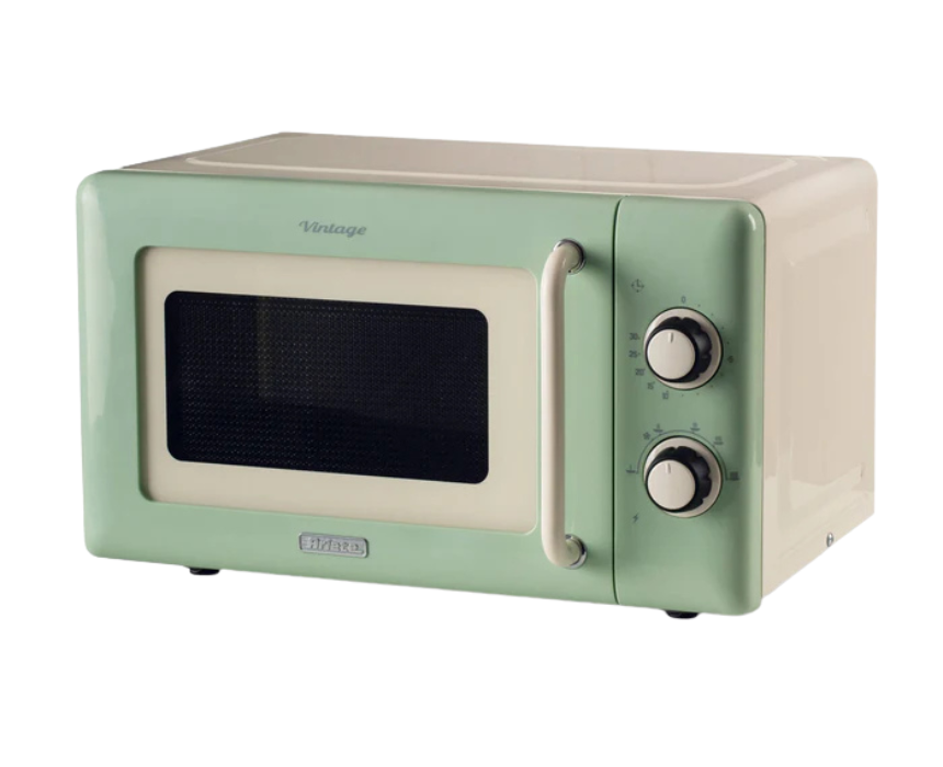 The Vintage Microwave Oven offers 800W power, 20L capacity, and 5 cooking levels for cooking, heating, and defrosting. Its 30-minute timer, 27 cm glass tray, and end-of-cooking signal make mealtime easy, while the pastel retro design adds a stylish, nostalgic touch to any kitchen.