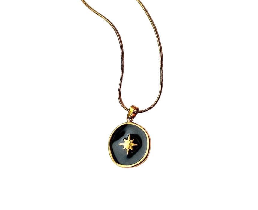The Midnight Charm Necklace features a stunning 18K gold-plated stainless steel pendant, offering a sleek, elegant design perfect for any occasion. Its versatile charm adds a modern touch to both casual and formal outfits. Pair it with a chic dress for a night out or wear it with a casual top to elevate your everyday look. This timeless piece is an essential addition to any jewelry collection, combining durability and style effortlessly.
