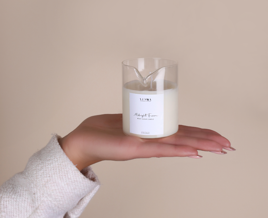 Midnight Fusion Body Candle Serum transforms from a soothing candle into a nourishing body serum, offering a natural and organic skincare ritual that melts luxuriously into the skin. Paraffin-free and allergy-friendly, it hydrates deeply while leaving a subtle, sensual scent. Weighing 135 g, each candle comes with a pack of 5 long matches, perfect for self-care or gifting. Light it, melt it, and massage gently for glowing, silky skin.