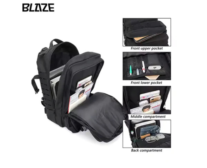 The Blaze CrossFit Backpack offers a spacious 45 liter capacity with multiple organized compartments, including ventilated shoe storage, to carry gym, travel, and training essentials with ease. Built from durable, water-resistant materials, it features padded shoulder straps and a breathable back panel for comfortable heavy-load carrying. Worn over both shoulders, it pairs perfectly with athletic or casual outfits for workouts and on-the-go use.
