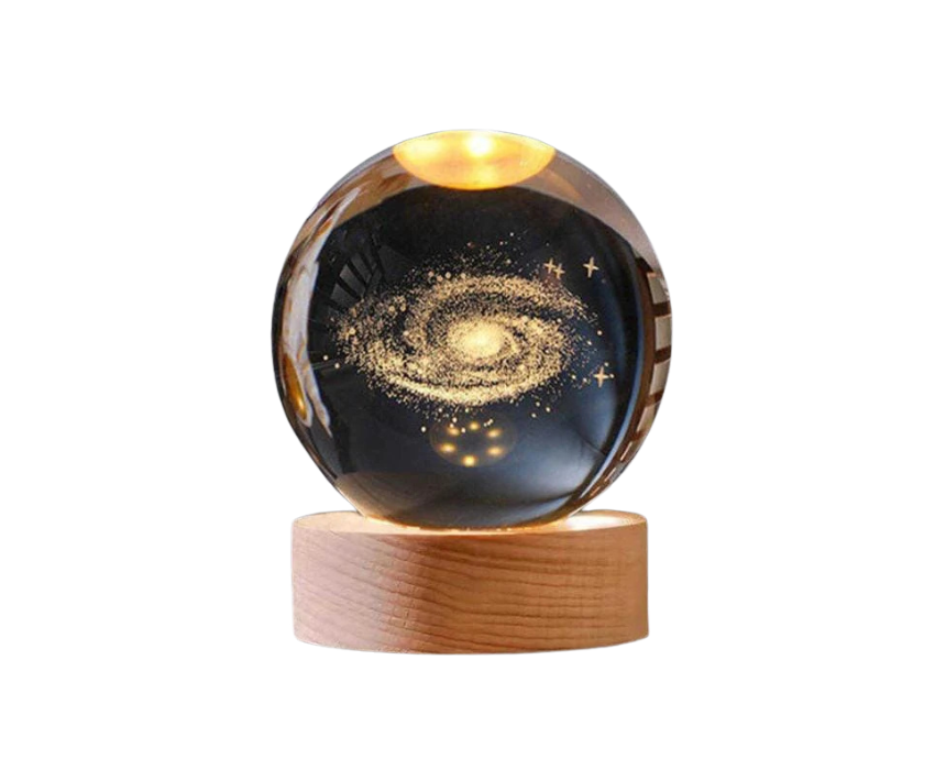 This 6 cm Milky Way lamp features a wood base with a cable and switch button, offering an easy way to elevate any room’s atmosphere. Packaged in a white box with a kraft gift bag, it adds a soft cosmic glow to desks, shelves, or bedside areas and pairs effortlessly with any decor style.