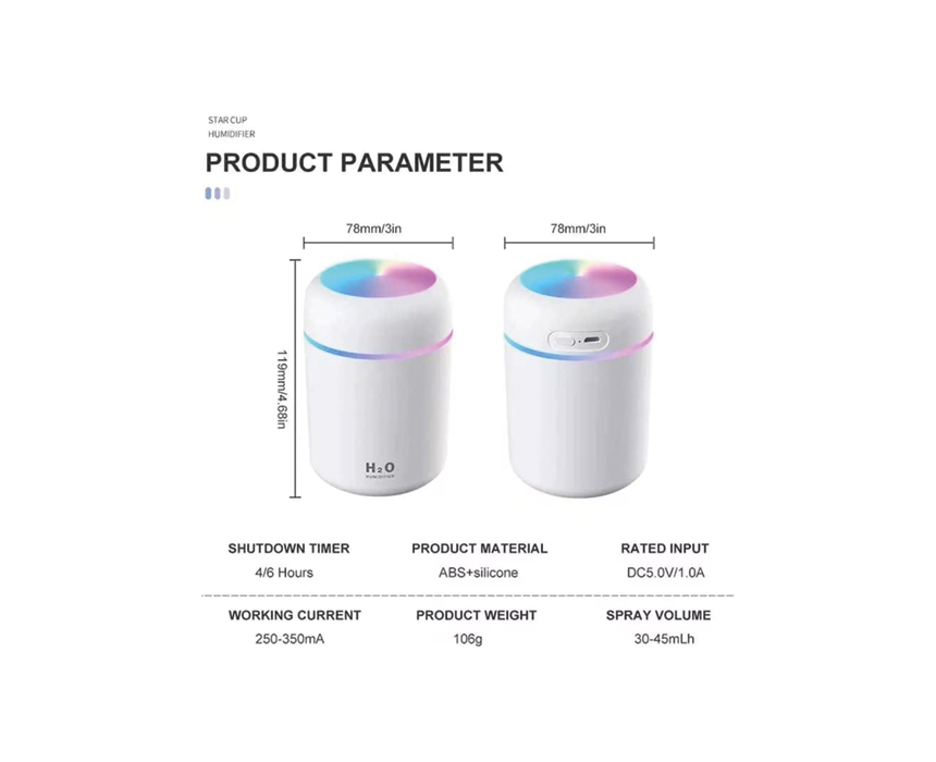 This Mini Air Humidifier is a compact ultrasonic diffuser with a 300ml capacity that quietly refreshes your space while cycling through soothing color LED lights. Made from durable ABS and silicone and powered by USB, it’s perfect for desks, bedrooms, cars or travel. Simply plug it in to create a calming environment and elevate your mood or workspace with style.