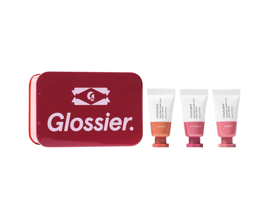 The Mini Cloud Paint Blush Trio by Glossier features three blendable gel cream blush shades that deliver a natural, dewy flush. The lightweight formula melts into skin for buildable color and a radiant finish, perfect for mixing and matching to suit any mood or look. Apply to the apples of the cheeks with fingertips or a brush for a soft, glowing effect or layer for a more vibrant, luminous finish.