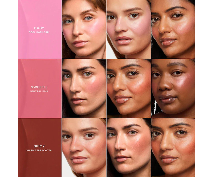 The Mini Dew Blush Trio Gift Set by Saie features three blendable liquid blush shades designed to deliver a fresh, dewy flush to the cheeks. The lightweight formula melts seamlessly into skin, allowing buildable color that enhances a natural glow. Dot onto the apples of the cheeks and blend with fingertips or a brush for a soft wash of color, or layer for a more vibrant, radiant finish.
