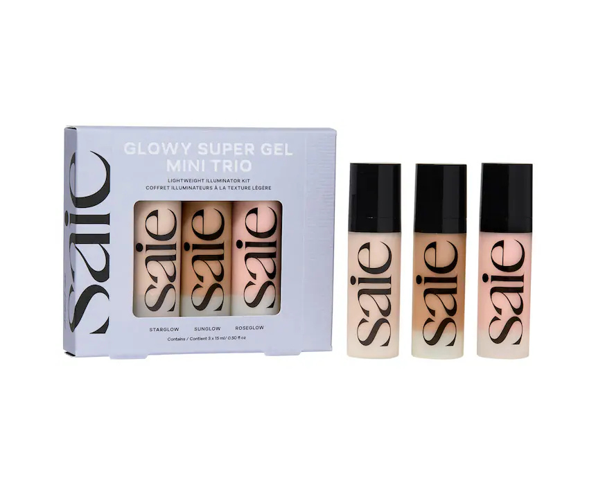 The Saie Mini Glowy Super Gel Trio Gift Set features travel-size illuminating gels designed to deliver a sheer, natural-looking glow to the skin. Lightweight and easy to blend, these multitasking formulas can be worn alone, mixed with foundation, or tapped onto high points of the face for a fresh, dewy finish. Perfect for everyday radiance or on-the-go touch-ups.