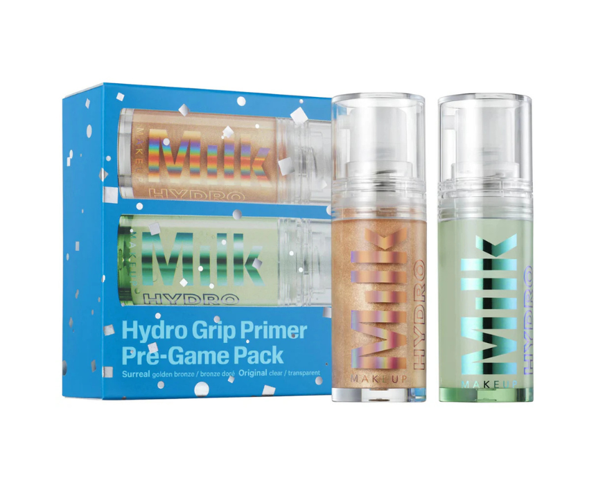 The Milk Makeup Mini Hydro Grip Primer Pre Game Pack Set features travel-size primers designed to hydrate the skin while creating a smooth, long-lasting base for makeup. Infused with watermelon, hyaluronic acid, and cannabis-derived hemp extract, it helps makeup adhere for all-day wear while keeping skin plump and refreshed. Ideal for layering under foundation or wearing alone for a natural, dewy finish.