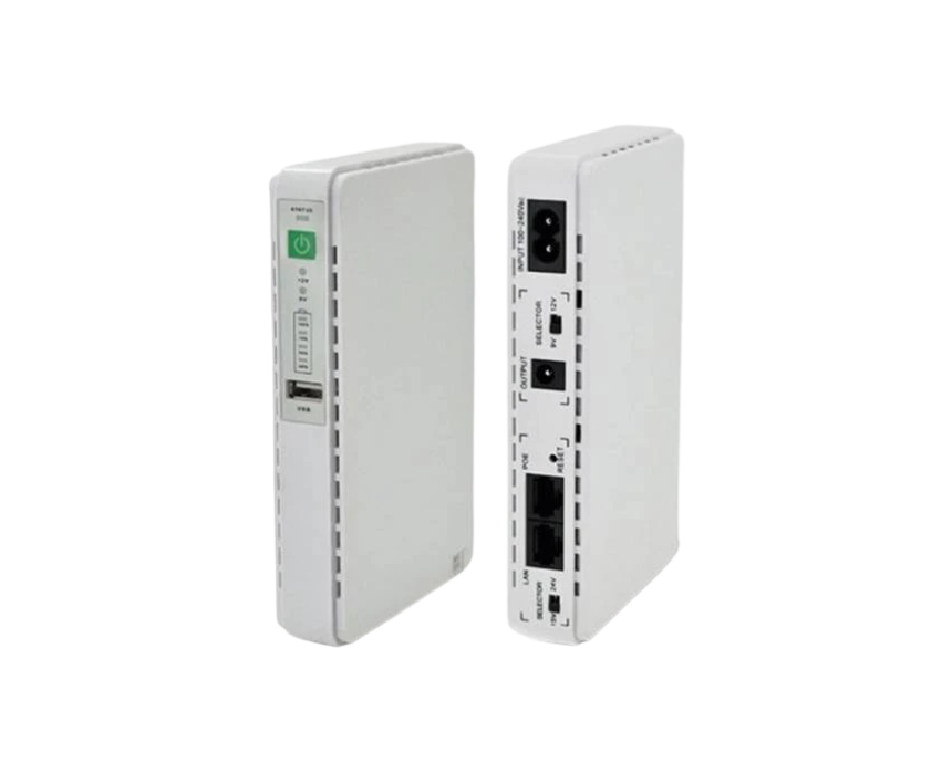 The Mini UPS 10800mAh POE2188L ensures uninterrupted power for routers, modems, wireless phones, and CCTV systems. Featuring a built-in lithium battery and microprocessor controller, it offers protection against overloads, short circuits, and battery issues. With adjustable output voltage, LED indicators, and a 5V USB charger, this compact unit provides reliable backup and versatile use at home or office.