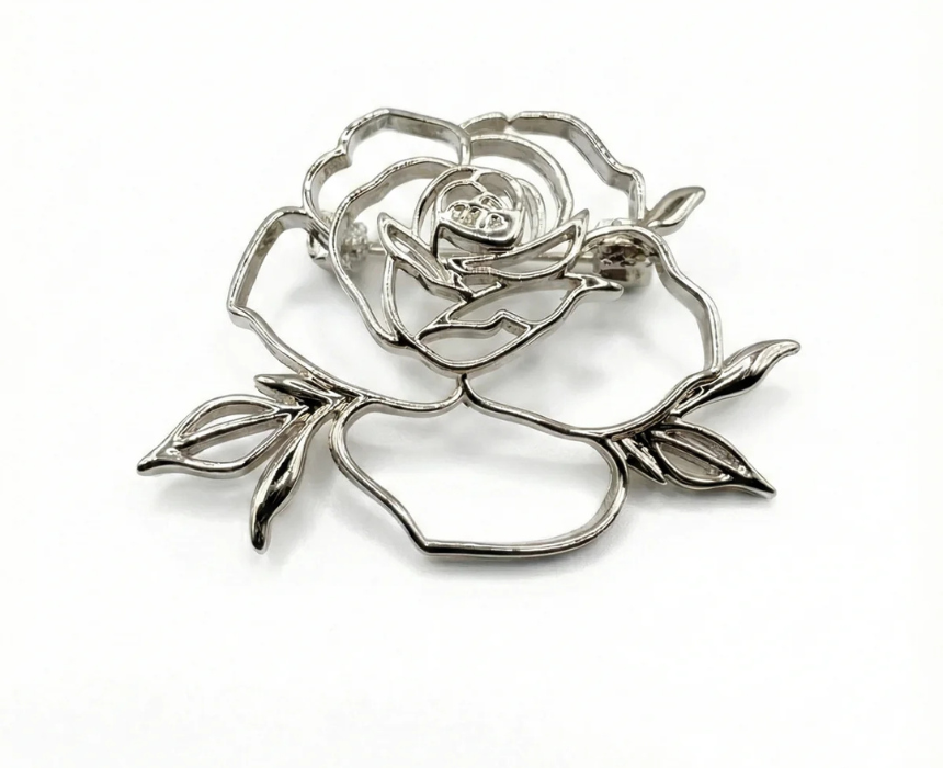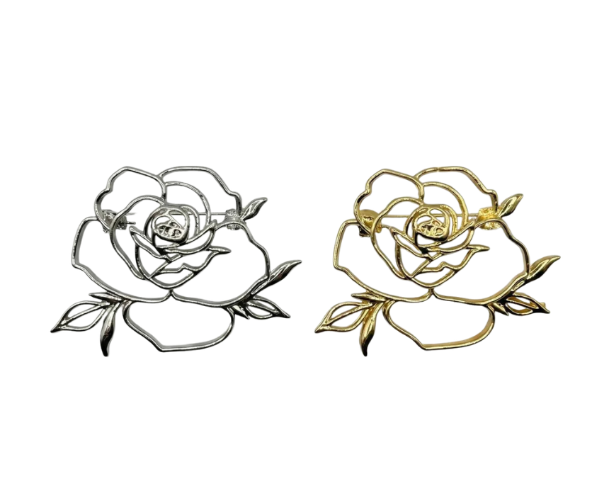 This minimalist hollow rose brooch features a sleek design in gold and silver tones, offering a modern and elegant accessory for any outfit. Versatile in style, it can be pinned on jackets, dresses, scarves, or handbags to add a subtle yet sophisticated accent. A timeless piece that complements both everyday wear and special occasion looks.