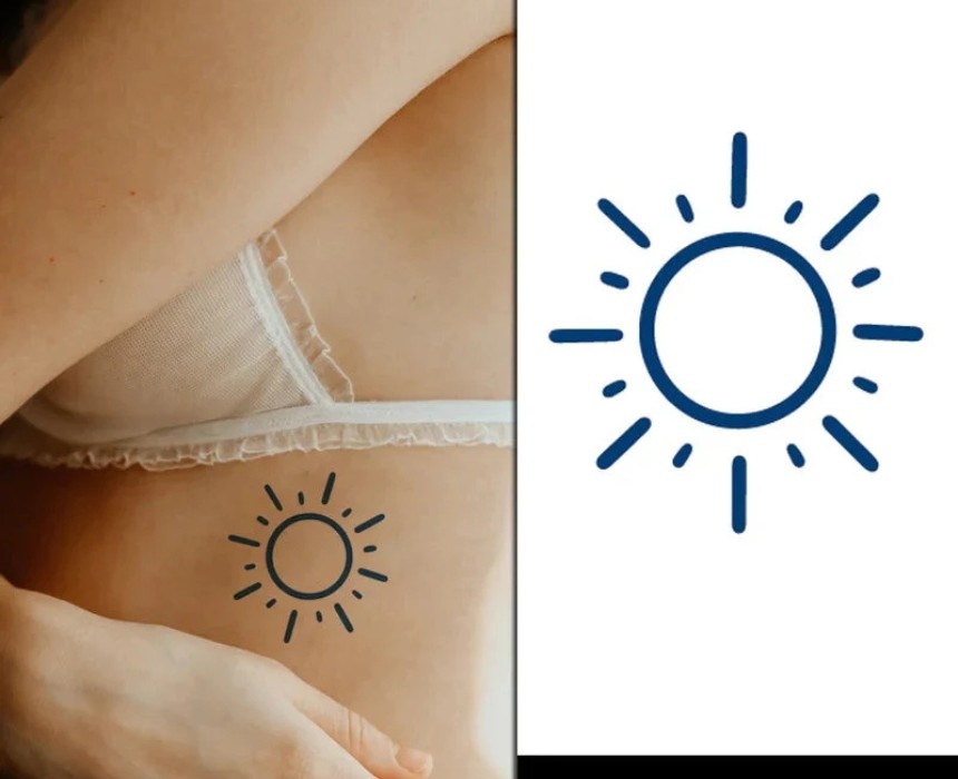 Minimalistic Sun Jagua Tattoo in a 5 x 5 cm size features a clean, radiant design that develops into a rich natural stain on the skin. Perfect for placement on the wrist, ankle, or shoulder, it adds a subtle yet uplifting accent to everyday styling. Easy to apply and temporary, it can be worn alone or layered with other minimalist designs.