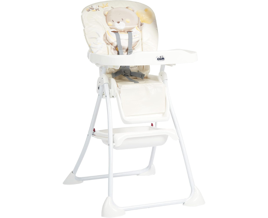 The Cam Mini Plus High Chair, made in Italy, is ideal for children aged 6 to 36 months, combining safety, comfort, and practicality. It features 3 backrest reclines, a 3-position adjustable footrest, wide adjustable seat pad with 5-point harness, a large table, and soft padding. Lightweight at 6.6 kg, foldable for compact storage, easy to clean with a sponge, and made from non-toxic, phthalate-free materials, it ensures safe and enjoyable mealtimes.