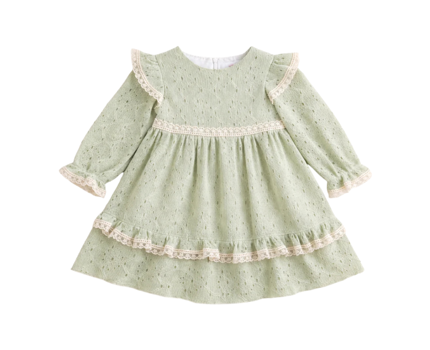 The Mint Lace Dress is designed for children aged 2 to 6 years, combining elegance and comfort for everyday wear or special occasions. Crafted from soft, breathable fabric with delicate lace detailing, it allows easy movement while maintaining a stylish look. Pair it with sandals or flats for a charming outfit perfect for outings, parties, or family events.