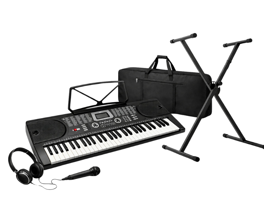 This complete beginner bundle includes a digital keyboard, adjustable stand, padded carry bag, headphones, microphone, and music stand — everything needed to start playing right away. Designed for beginners, students, and home practice, it offers convenience and great value compared to buying items separately. Perfect for learning, practice, and developing musical skills at home.