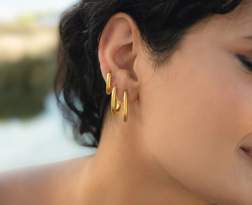 Flow Modern Huggie Small earrings feature a sleek, minimal silhouette designed for everyday comfort and effortless style. Crafted for a secure fit, they sit close to the ear, making them perfect for layering or wearing solo for a clean, modern look. Pair them with casual outfits or elevate evening wear with their subtle yet polished finish.
