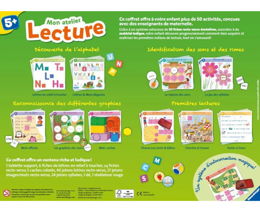 MON ATELIER LECTURE is an educational activity set designed to make reading and learning fun for children. It encourages literacy, comprehension, and creative thinking through interactive exercises and engaging materials. Ideal for solo learning or guided activities, it helps develop essential reading skills while keeping children entertained.