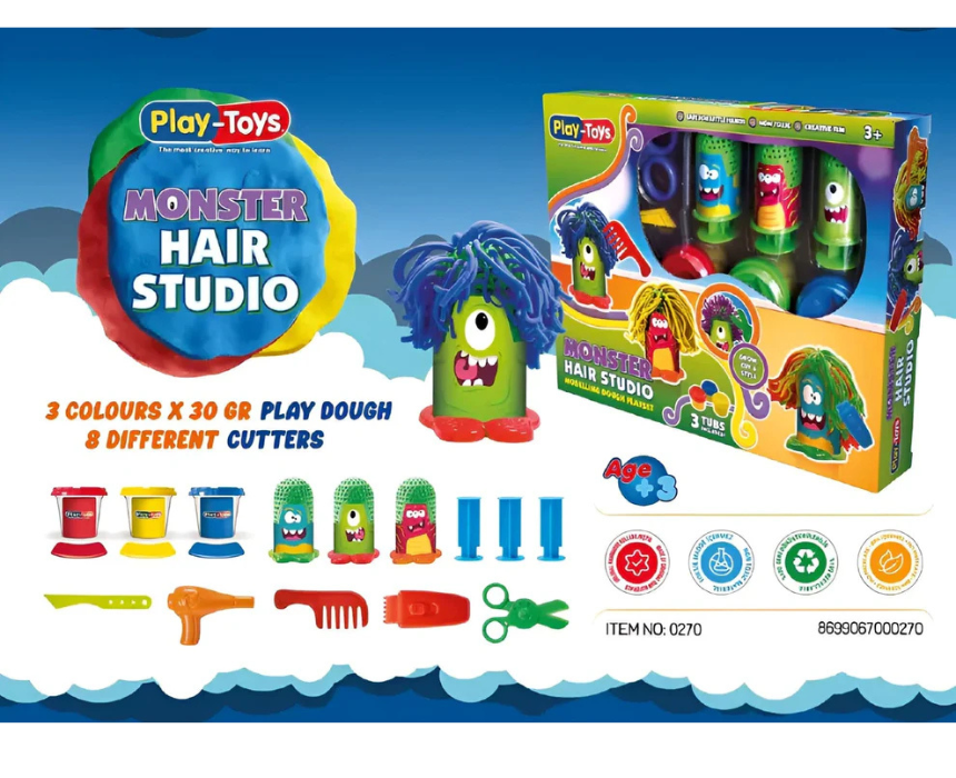Monster Hair Studio is a creative play set that lets kids design and style fun monster characters using colorful modeling material and playful tools. Children can shape, cut, and decorate different hairstyles while exploring their imagination and improving fine motor skills. Perfect for creative playtime, group activities, or craft sessions that encourage hands on fun and artistic expression.