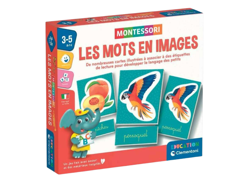 This Montessori-Inspired Word & Picture Game helps children aged 3–5 develop vocabulary by matching illustrated cards with the corresponding words. The set encourages logic, observation, and categorization skills using cardboard pockets for animals, musical instruments, fruits and vegetables, and means of transport. Made in Italy, it offers a natural, engaging way for preschoolers to learn language and classification through play.