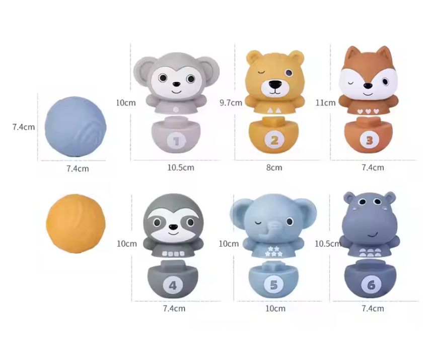 The Montessori Silicone Animal Bowling Game Shape Matching & Stacking Toy is a fun and educational toy designed for children aged 1 and up. With a box size of 27.5cm x 14.5cm x 11.5cm, this interactive toy encourages early learning through shape matching, stacking, and bowling activities. Perfect for developing fine motor skills, hand-eye coordination, and problem-solving, it provides hours of engaging play while promoting creativity and cognitive development in young children Designed for kids aged 1+
