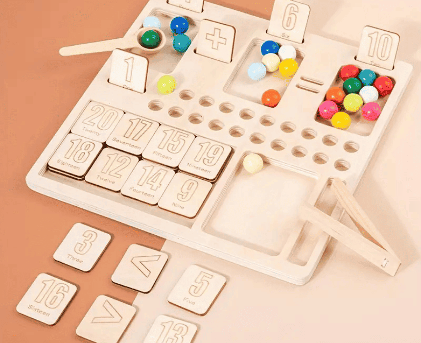 The Montessori Wooden Math Counting Coordination Board is a bead clip game that develops math logic, problem-solving, and fine motor skills through hands-on play. Measuring 22cm x 22cm, it encourages focus, brain development, and family interaction while offering a fun alternative to screen time. This engaging puzzle also helps children relax and learn in a stress-free way. Designed for kids aged 3+